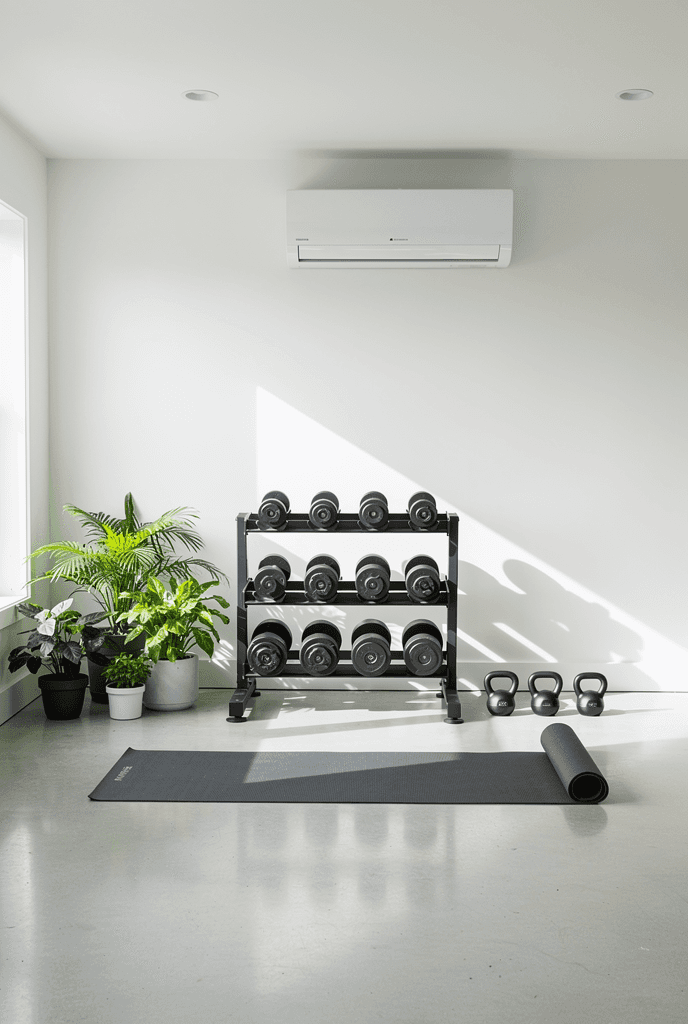 Stop checking the weather before you work out. A single mini-split turns your garage into a year-round gym—cool in August, warm in January.